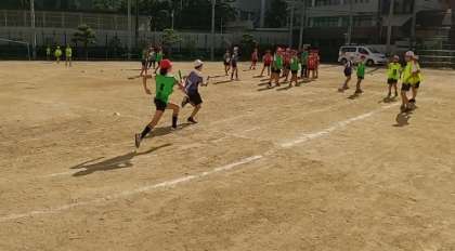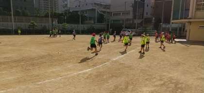 5年生が、リレーの練習をしています。