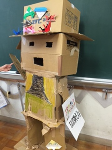 なんと等身大のロボット。「一学期のあいだ、ありがとう!!」と子どもたちがプレゼントしてくれたそうです。