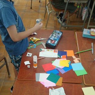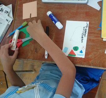 手紙を書いて交流する楽しさと色紙を張ったり絵を描くことの喜びの両方を季節のあいさつの暑中見舞いの作成を通して学びます。