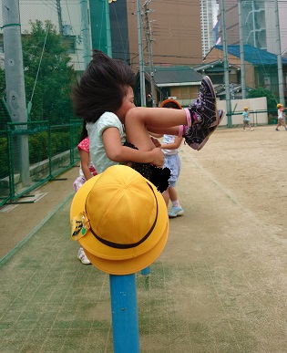 今日も鉄棒をしている子どもたちが、演技?を披露してくれました。