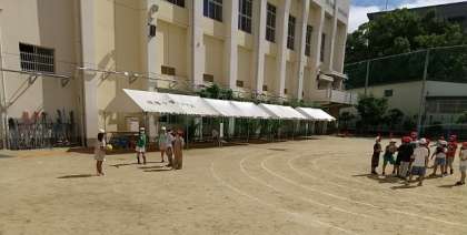 お昼前からは雲が晴れて、昼休みに3・4年生の子どもたちが、運動場で元気に遊んでいます。