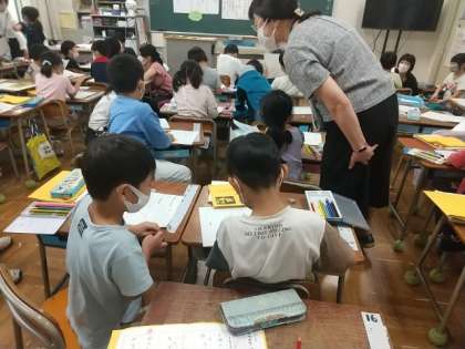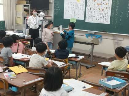 1年生が国語で「サラダでげんき」という物語文を学習しています。