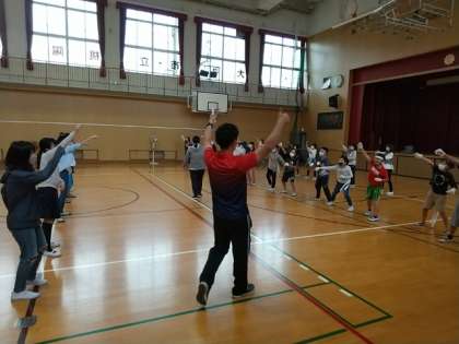 今日はあいにくの雨になりましたが、応援団の子どもたちが、給食後に体育館で、運動会前日最後の練習をしていました。