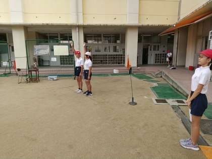 児童代表の言葉。カメラに向かって話すのはやりにくかっかもしれませんが、しっかりと運動会への決意を述べることができました。