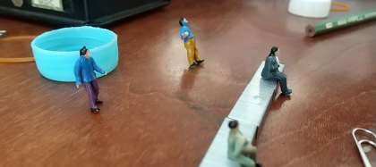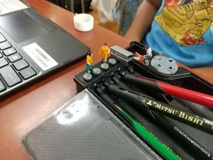 文具の周りには、とても小さなミニチュア人形が置かれていました。