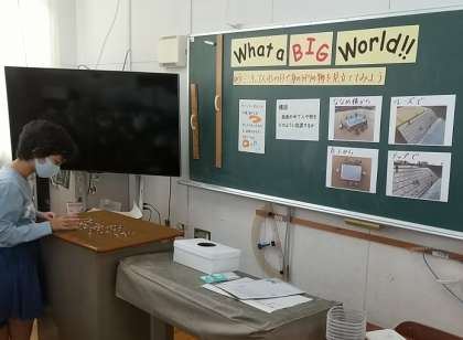 5年生が、身の回りの文具とにらめっこしながら、何かをしています。