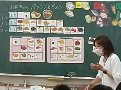 天王寺区内の小学校から、栄養教諭の先生に来ていただき、6年生に栄養バランスの指導をしていただきました。