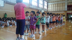 一年生も、こういう儀式的行事(学習指導要領の特別活動)での振る舞いに慣れてきました。他の学年の子どもたちも突然の終業式ですが、シッカリと「式」らしい態度でした。