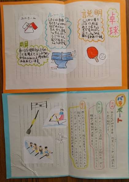 学習の発展として、興味を持ったパラスポーツについて調べ読みをし、調べたことをリーフレットにまとめました。