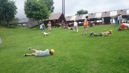 といっても体が動いてしまいます。芝生の坂をゴロゴロ。