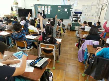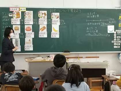 栄養教諭の先生に来ていただき、4年生に「おやつについて考えよう」という内容で、栄養指導の授業をしていただきました。