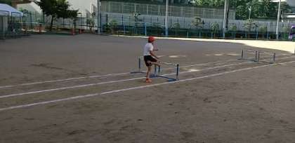 今日は、最初のタイム測定をしました。学習が進むにつれて、ハードリングや中間走の練習を重ね、タイムを伸ばしたいです。