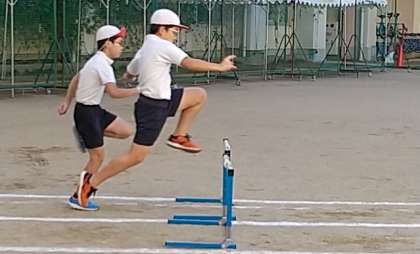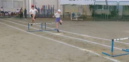 6年生が、体育で「ハードル走」を学習しています。