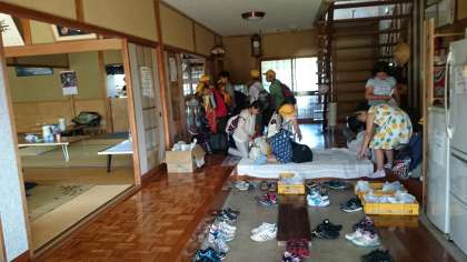 部屋を片付け、大きな荷物を大広間に下ろします。