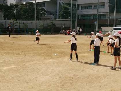 ジャパンラグビーリーグワン「花園近鉄ライナーズ」の方に来ていただき、3年生が、ラグビー体験をしました。