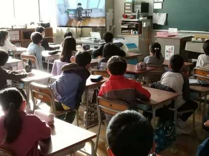 美化委員会の子どもたちが、正しいそうじの仕方について、テレビ放送朝会で説明してくれました。