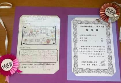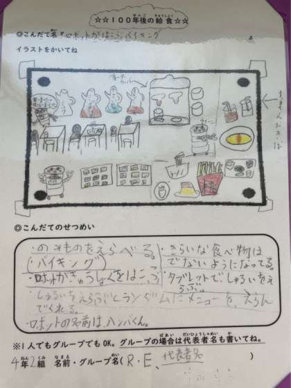 桃陽小学校創立100周年を記念して、子どもたちが考えた「100年後の給食」コンテストをしました。