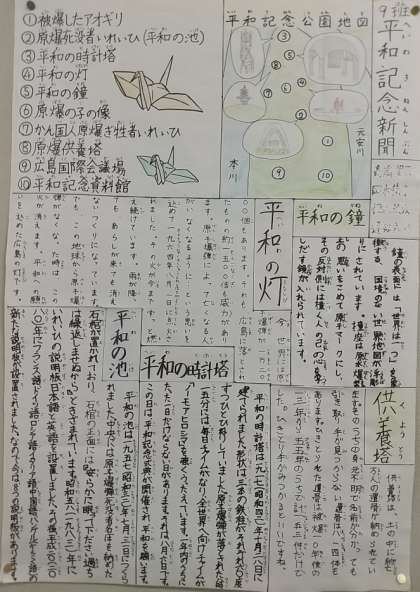 6年生が、10月の修学旅行で学んだことを壁新聞にまとめました。
