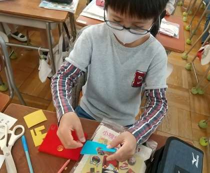 5年生が、家庭科でフェルトを使った小物づくりに挑戦していました。