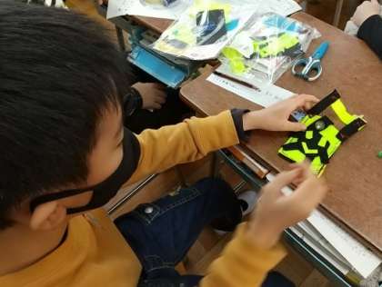 思い思いに自分でデザインした小銭入れやペンンケース、ティッシュカバーなどを作っていました。