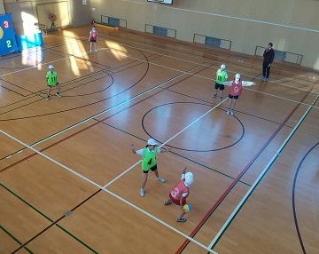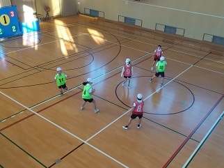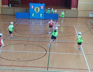 5年生が、体育でゴール型ゲームのハンドボールに取り組んでいます。
