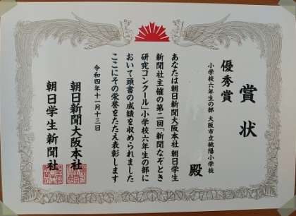 6年女子が、朝日学生新聞社主催の「新聞なぞとき研究コンクール」で、優秀賞を受賞しました。