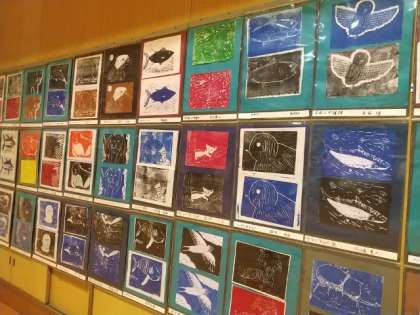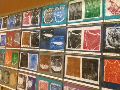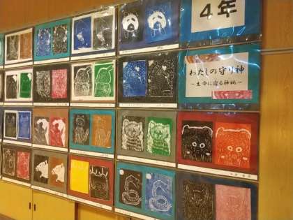 4年生は、「わたしの守り神」というテーマで、木版画に取り組みました。