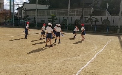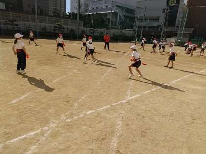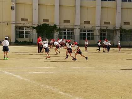 冷たい風の吹く一日になりましたが、3年生の子どもたちが、元気にタグラグビーをしていました。