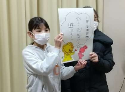 放送児童朝会で、健康委員会の児童が、「外で元気に遊ぼう」という今月の保健目標を発表してくれました。
