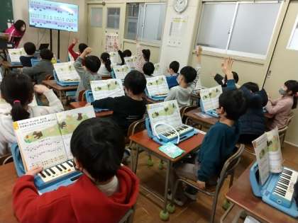 1年生が、鍵盤ハーモニカで、「こいぬのマーチ」を演奏する練習をしていました。