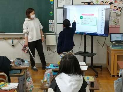 3年生が、「一辺4cmの正三角形のかき方を考えよう」というめあてで、算数の学習をしました。