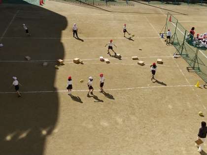 低学年の体育では「○○遊び」をしながら、中学年高学年への運動領域につなげていきます。