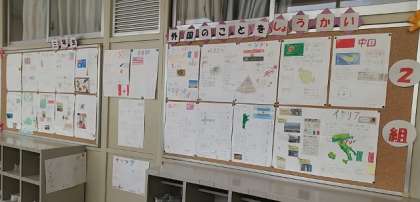 また、学習に関係する本を探して、調べ学習を行うこともあります。調べまとめたことを図書館の廊下に掲示し、ほかの学年の児童に見てもらうこともあります。