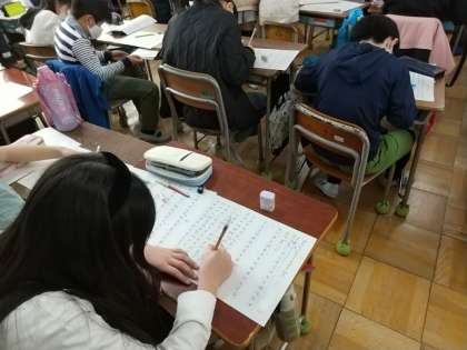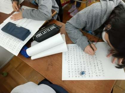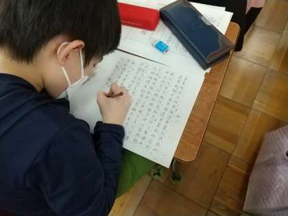 4年生が、この1年間で学習した漢字をふりかえりながら書き取りをしていました。