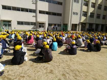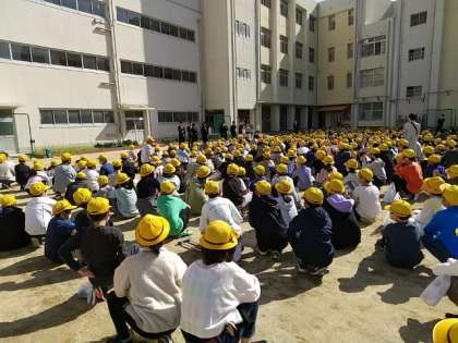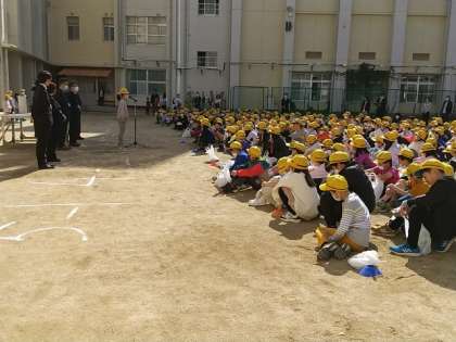 1時間目には、全校児童が運動場に集まって、着任式(新転入の教職員の紹介)に続き、始業式を行いました。
