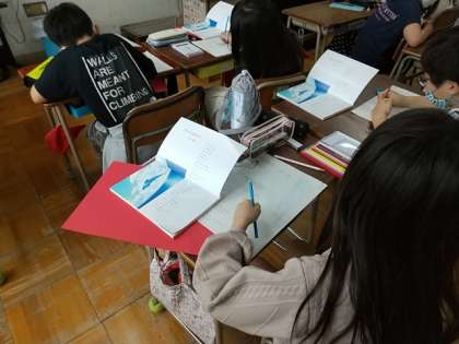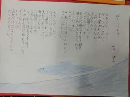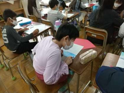 5年生は、国語の教科書のとびらにある詩を、視写していました。