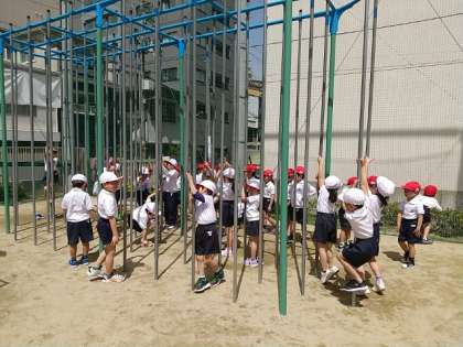 上り棒・ジャングルジム・うんてい・鉄棒で遊びながら身体を動かしました。
