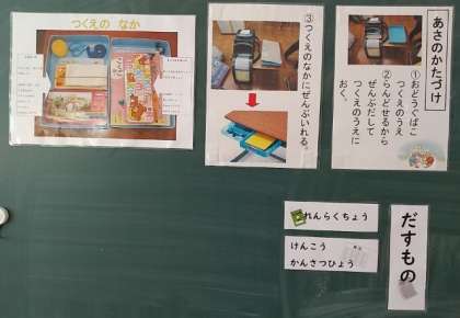 写真を見れば、朝学校に来てから、どのような用意をすればよいかわかります。