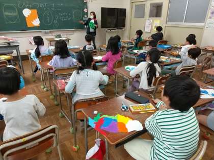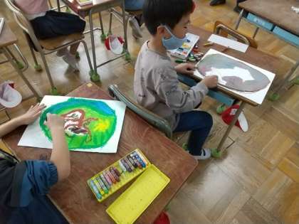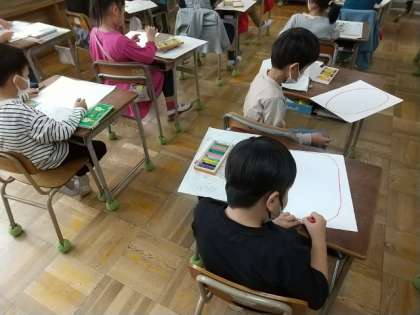 2年生の子どもたちが、想像力を働かせて、思い思いに自分なりのひみつのたまごを描いています。