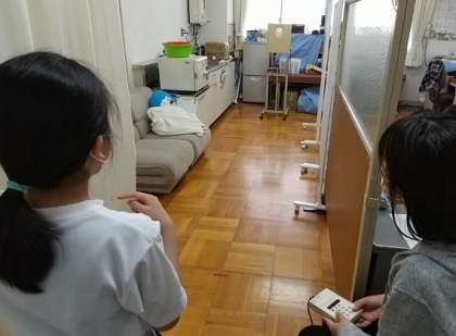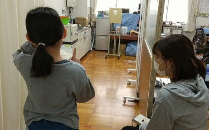 まず、保健室の先生から検査の仕方の説明を受け、順番に検査してもらいます。