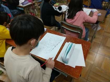 今日は校区地図で地図上での東西南北などについて学習していました。