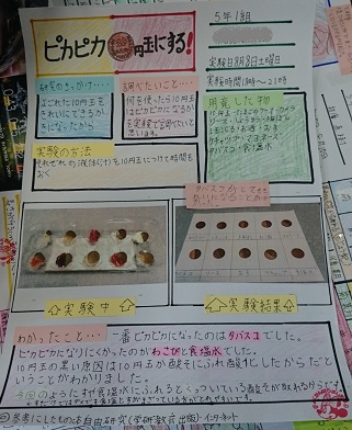 夏休みの自由研究をお互いに見て、気づいたことなどを発表しました。