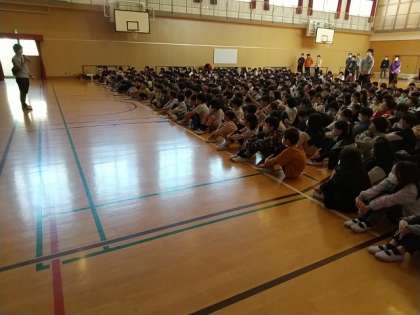 ゴールデンウィークの合間の月曜日、全校児童朝会を行いました。