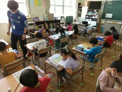 1年生が、小学校に入学して初めての「さんすう てすと」をしていました。