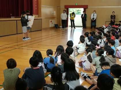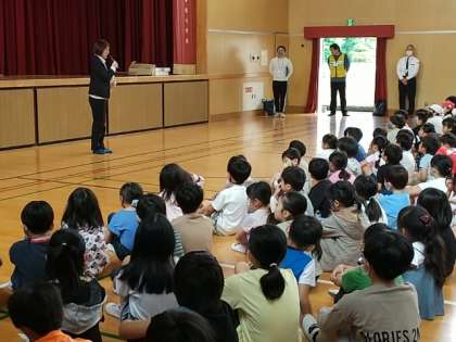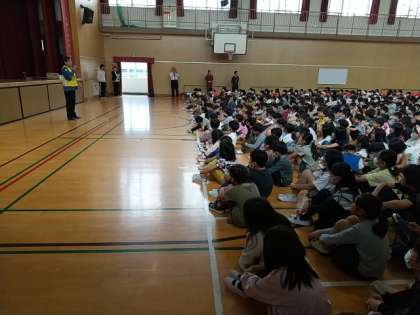 「交通ルールを守る」「自分の身を守るための五つの約束」についてお話をしていただきました。これまでにも、児童朝会や学級指導でもくりかえしお話ししていますが、各ご家庭でも折にふれて話題にしていただきたいです。
