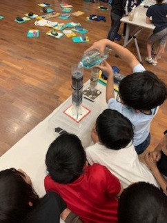 ビデオで水源や淀川にある取水場の事などを学習した後、実際に浄水場内を見学しました。また、水がきれいになる仕組みについて実験で確かめました。