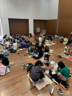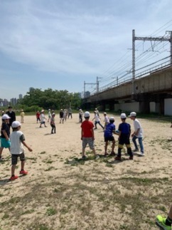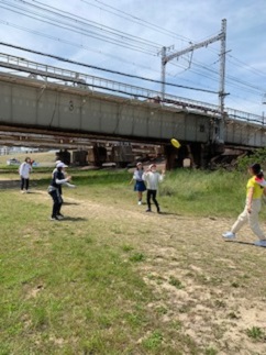見学後、お弁当を食べてから淀川河川敷公園に移動して、ドッジボールやフリスビーを楽しみました。