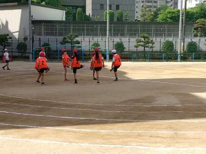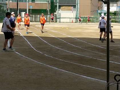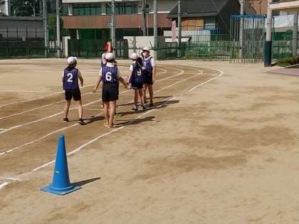 チームごとに準備運動をしたり、バトンの受け渡しについて相談したりしながら練習を進めめています。走ることが得意な子も苦手な子もいますが、チーム内でコミュニケしょんをとりながら、目標に向かって努力することを学んでほしいです。