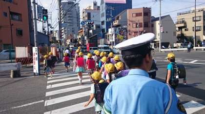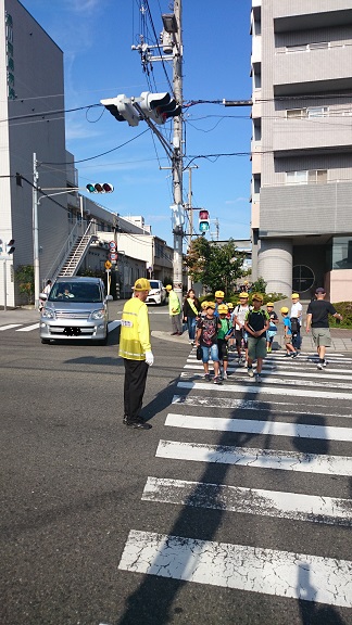 連合町会長の朝倉さんをはじめ多くの地域の皆さんが「見守り」として、堂ヶ芝と細工谷の交差点に出て来てくださいました。