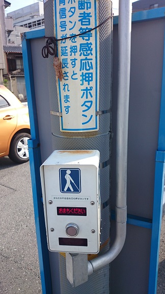 (写真・下)信号が赤のうちにボタンを押すと、歩行者信号の「青」の時間が長くなりま